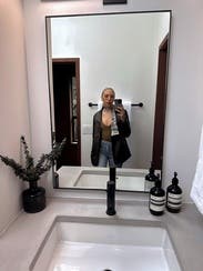 Looks soooo incredible on and in person. Jacket feels light yet lining feels warm - great for transitional months. Obsessed with this one.