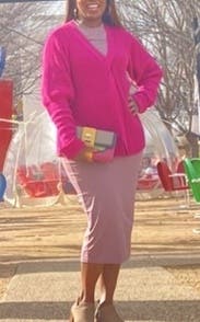 Fun galentines day sweater. The slit in the middle was really sexy too.
