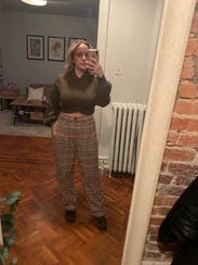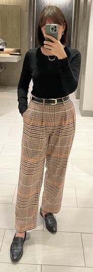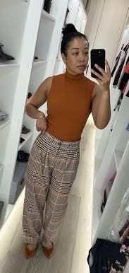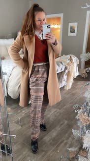 These pants were so comfortable! They made me feel amazing at 3 months postpartum. The plaid was super fun and it's orange not red (as I had thought lol!). They are super warm and were a perfect length on me. I really wanted to buy.