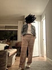 On trend, comfortable, so cute! Got so many compliments! Oversized fit but still a little loose in the waist for me even after sizing down. Will go down one more size when I rent again.