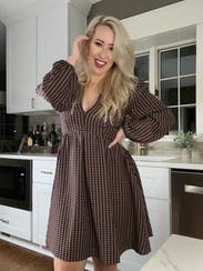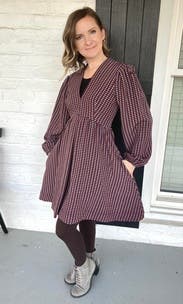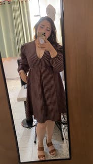 Loved how easy this dress was to put on and wear. Super comfortable. Wore to church. I will say it was a bit windy and it blew up so hold it down if it's windy!! :) but overall flattering and true to size. Also very forgiving of my my post holidays belly too which I appreciated!