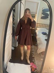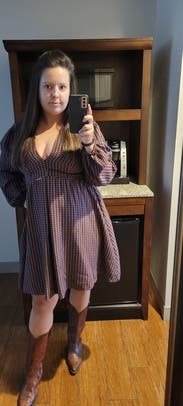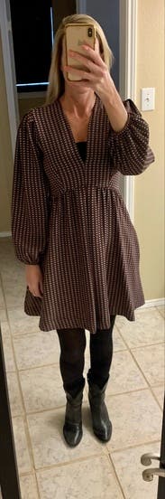 I'm obsessed with this. More of a fall dress, so I will try to rent it again later in the year. Looks really cute with over the knee boots. Very busty, but I don't mind that. Would probably be even more flattering if I had smaller boobs. But honestly felt great either way!