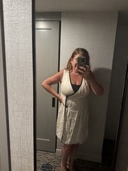 This dress was beautiful and comfortable. I loved it. However, if you have a larger chest, it’s not great for sitting. The top gapes open. My COO got quite a show at lunch!!!