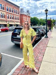 Easy piece to wear to an event or even running errands. Color is a stand out! Dedicated one star as I had to keep retying the bow when it came loose but I would rent again regardless