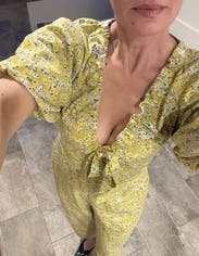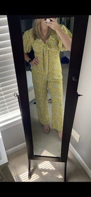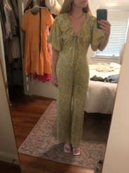 I got this on a whim and thought it wouldn’t end up working cause most jumpsuits fit me weird. I was so wrong. This may be the best fitting jumpsuit (for me) I’ve ever worn! If the pattern and color was more neutral I would buy this! Cinching the top really tight is the move as others mentioned.