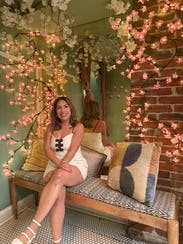 This charming mini dress from Love Shack Fancy features a floral print with delicate ruffle details, capturing a romantic and whimsical vibe. With its playful design and feminine flair, the Adelaide Dress adds a touch of vintage-inspired elegance to your wardrobe.