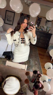 Pretty dress. Dress do run small, so I went up a size due to the other reviews and it fit perfectly. Dress has no stretch. Wore it with the matching jacket and was giving Chanel. Got so many compliments from strangers. Can definitely be worn on its own or can be style other ways. Loved it so much I bought it. Rent it. You won’t be disappointed.