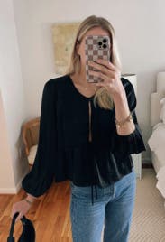 This shirt was the perfect mix between flirty and conservative while being so flattering. I also wore it with white jeans and some black sandals to a dinner with some girlfriends! Loved it