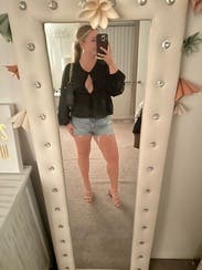 So flattering. Tied it tight so the boob hole wasn’t too big for work lol. Would rent again!