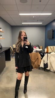 Loved this skirt. The only bummer was it’s polyester so wearing both the skirt and the jacket was 🥵. Not breathable at all. But on it’s own, it’s super fun and flirty.