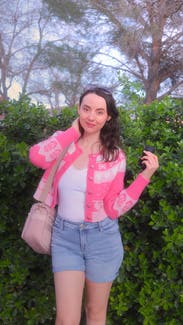 I love this cardigan!! I was worried about how pink it was but when I paired it with some jeans, sneakers, and a white baby tee under, it just worked. I got so many compliments and the material was not scratchy at all to me.