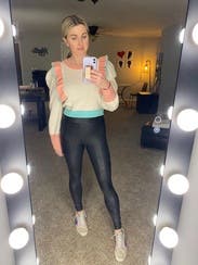 Is super cute with high waisted white jeans. I would rock it if I wasn’t 40 but beware it’s really short. Super cute though!