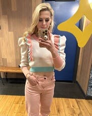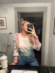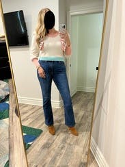 This sweater was a hit! So fun and flirty! Slightly cropped so not work friendly but perfect for brunch and a night out