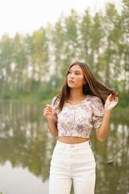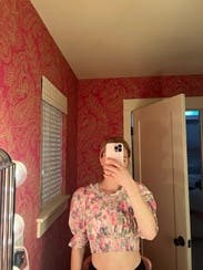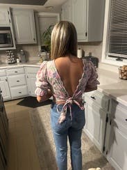 I'm not one to wear crop tops, but this shirt was a dream! The colors were beautiful, fabric so light, it was a perfect length and open back with a bow. It was so feminine for a brunch. Love this shirt!
