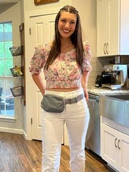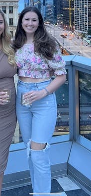 Wore this top with the matching skirt for Easter and LOVED it. Wish I had more occasions to wear it! I had to have my friend tie the top super tight to keep the girls secure, but it was fine to wear without a bra. Would also look so cute with white jeans for a more casual look