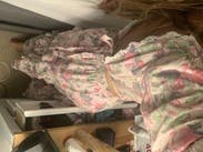 Liked this top - but I love a floofy floral. Fits well and quite flexibly, you could probably go a size down and it is forgiving bust-wise. The only way it fastens is via a tie at the back, which feels kind of weird/like it's gonna fall off your shoulders, but it doesn't. Elastic waist. Loved it with the matching skirt.