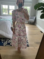 Loved this! It did need to be ironed when it got to me but it was SO CUTE! I didn’t wear a bra bc of the open back. It was nice and cool for this hot outdoor concert! So tempting to buy it if I thought I’d wear it again.