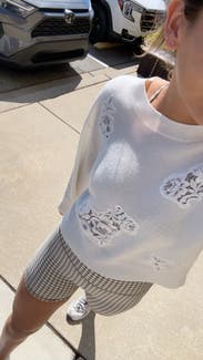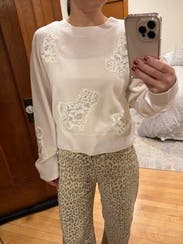 Very pretty cream sweater. Lace is just right without being too showy. Wore once with jeans and once with a skirt.