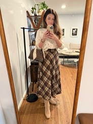 Feminine touch with the lace, nice cashmere fabric, and flattering ivory color. I'd rent again! Note: fit is a little boxy.