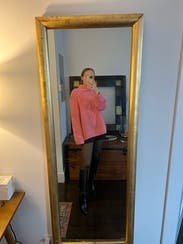 Adorable oversized sweater! The color is a breath of fresh air for the dreary winter weather in NYC. I was hoping that it would be a bit longer based on the reviews so I could wear it as a mini dress, but it was a bit too short for that. Going to pair with short black shorts and tall boots for a similar effect.