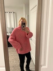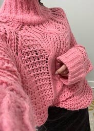 Casual, warm, wide knit, very pink. Fun one time rental.