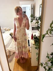 Wore this to wine tasting for a “love shack fancy” themed bach…it was perfect! A little loose beautiful material and very comfy/flowy, got a ton of compliments!
