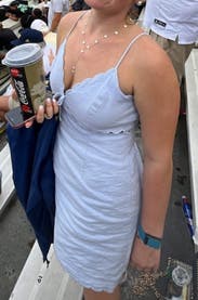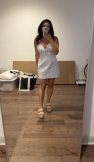 Honestly so cute but as someone who has a larger bottom, def size up, such an adorable dress but I was literally pulling it down all night!