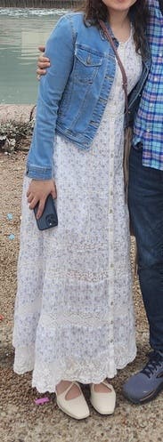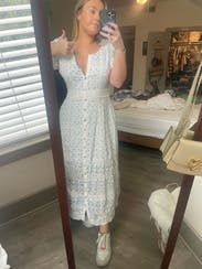 I rented for engagement pictures but was a little too casual for me… perfect for work as a school social worker, and for church… highly recommended for teachers and the like. Super comfortable, feminine, flowy and modest. The fit is super flattering. Wore with sandals