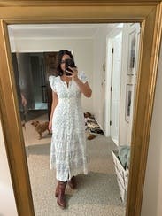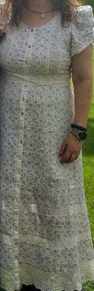 I felt like a character in ransom canyon lol! I loved the fit of this. I wore it for family photos. It was so feminine and fit perfectly through the waist / bust