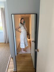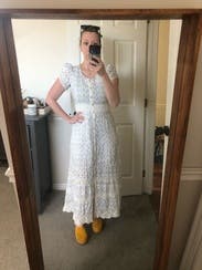 I felt pretty in this dress. My only complaint was the puffed sleeves felt borderline comical? Otherwise, great dress!