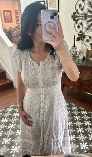 The buttons on this dress would not stay closed even though the fit of this dress was large, maybe just stretched out holes? Would rent again in a smaller size but this was very comfy!