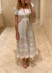 Such a sweet dress. I’m usually a 0-4 in Loveshack so this fit great. A little snug in chest area and I’m an A cup so size up if you have a larger chest. Loved this and felt super girly!