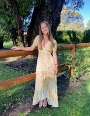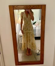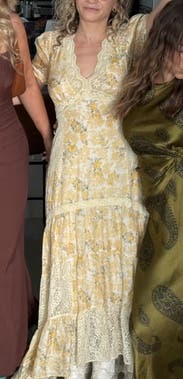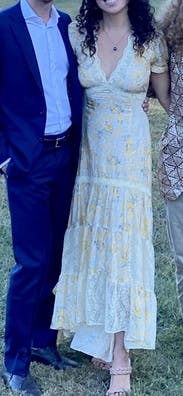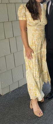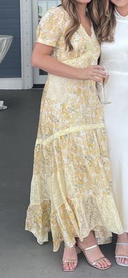 Wore this to a ranch wedding in Australia and it was so cute. Be aware that the dress is a high low cut, so if you're on the shorter side you will have to wear high heels so the dress doesn't drag in the back. Would rent again!