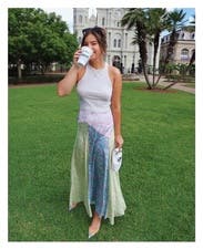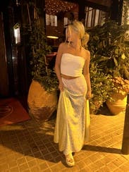 It truly speaks for itself. Stunning. I’m between a 4-6 and I always size down with LSF pieces. The fit was perfect. It took me a minute to find the right top to go with it. You’d have to try rlly hard to tuck something into the skirt without making it look weird.