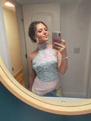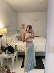 Loved the pastel colors. I found it to be true to size but if your usual size isn't available I would recommend sizing up rather than down. I didn't rent the matching top and tucked a tank top into it. If I rented again I would wear some form of crop top that doesn't require a tuck as the skirt fabric was thin so adding extra fabric underneath looked a little silly.