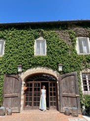 One of my favorite sets that I’ve rented. Skirt was super smooth, but not much stretch to it. Perfect outfit for a spring wedding!!