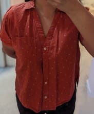 Loose fitting button up - red - tiny detail
