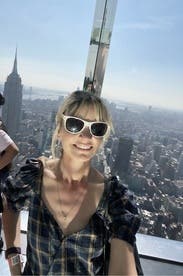 I don’t have a natural waistline and have wide shoulders; I have a very boxy body type. I was worried this would accentuate those features, but I felt great in this! Perfect amount of cleavage and great top for San Diego fall!