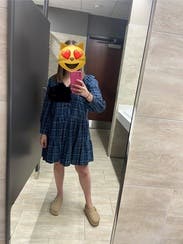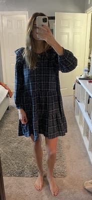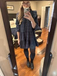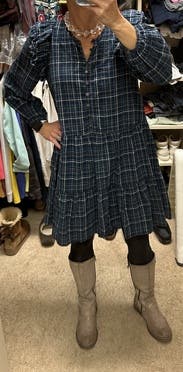 This is the perfect cute fall dress. It's lightweight and I love the ruffles. I ended up buying it online in a smaller size as it runs kinda big