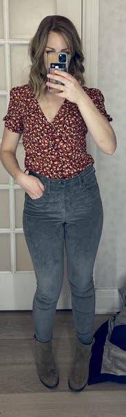 This was cute. A perfect fall top. But it runs small. The sleeves button and the result was too tight for my arms. I had to unbutton. And overall a little tight in the chest, plus you need a bralette because it was a little low-cut. It's also a bit short, which was fine for me in mid-rise pants, but if you are tall, keep that in mine. I think I would have enjoyed this more in a size 8.