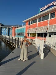 This was the most comfy flowy outfit. I love the thickness of the material for cooler days, but it wasn’t too hot even on a warm day. I wore it out to dinner and a nature walk while on vacation and I felt very comfortable. The top part fit perfectly and didn’t need to wear a bra with it. The legs were very flowy and are just above the feet so it didn’t drag on the ground at all.