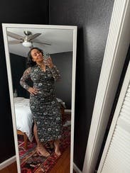 This dress is super versatile. I wore it for work and going out. Very easy to dress up with cute thigh boots or dress down with sneakers and leather jacket. It's form fitting but not in a way that made me feel self-conscious. The pattern and stretch are both very forgiving.
