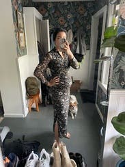 This dress is gorgeous and very forgiving. I wore it to a work conference dinner and another dinner out, and got tons of compliments and was so comfy the whole night.
