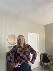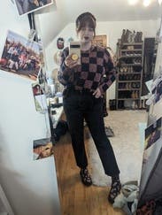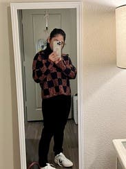easy sweater, i always get compliments on it because it is a different look with the checkerboard vibe