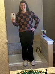 Loved this. It was easy to wear, boxy but not too much...didn't take a picture but wore it plenty. Thick knit that feels good and keeps you warm. I never wore a coat over it...SoCal winter is chilly but not COLD.