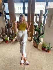 I love the quality and color and texture of this top, but I would size up it was super short so I had to wear high waist. I wore on a date and to a work party