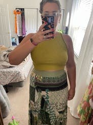 I love the color and idea of this, but there’s zero stretch to the knit and it’s super cropped, so fits more like a knitted sports bra than crop top. maybe smaller boobs would fare better!