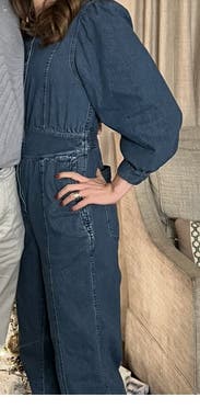 I chose this jumpsuit for its tailoring and fun touches (the poofy sleeve), but it didn’t look great on me. It’s a heavy, bulky denim that stretches out with wear, so it got baggy in the butt. That said, I wore it several times because I love a one and done and it was comfy.