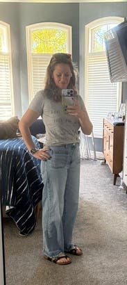 Wearing the jeans as I write this. Great fit, comfortable and trendy / light color so I don’t feel like an old mom 😂