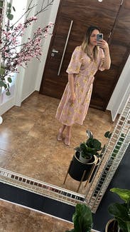 Beautiful wrap dress with a feminine, floral print. I loved this on my body and got lots of comments about it.